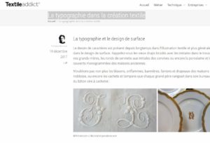 Le dessin de caractères est présent depuis longtemps dans l’illustration textile et plus généralement dans le design de surface. Rappelez-vous les vieux draps brodés avec les initiales dans le trousseau de vos grands-mères, les ronds de serviette aux initiales des convives ou encore la porcelaine et les couverts monogrammées des maisons anciennes.